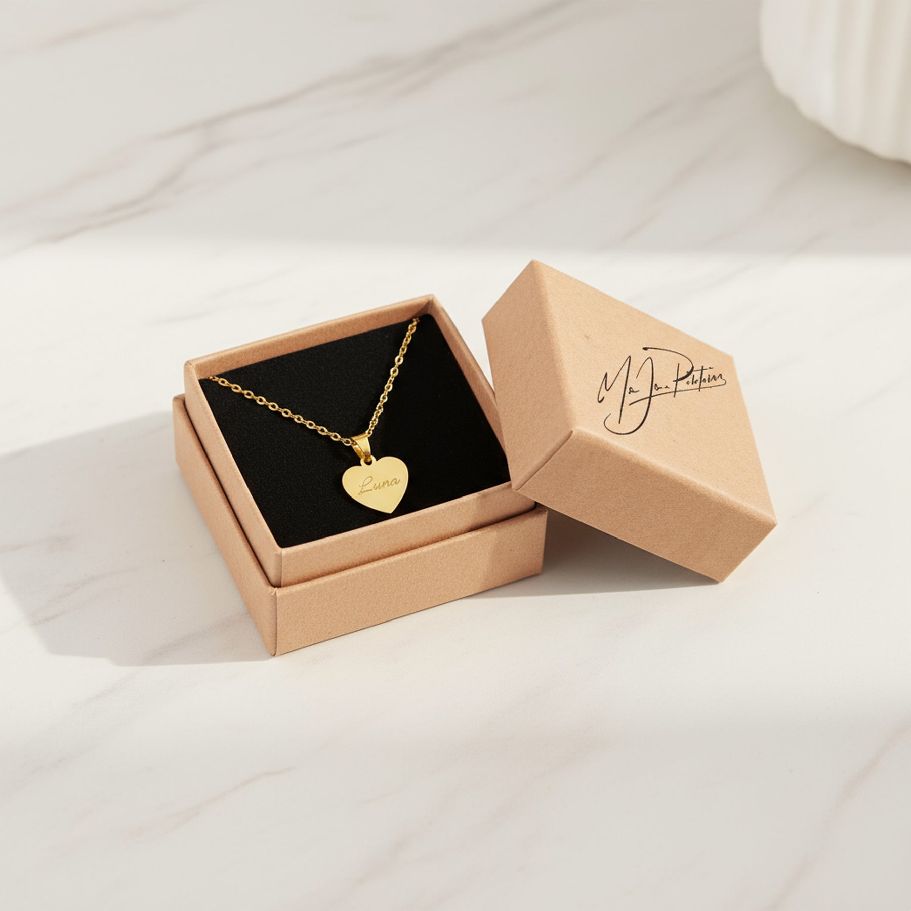 Goldfarbene Herzkette mit Gravur - personalisiert mit Name Datum oder Symbol